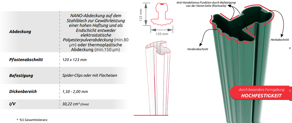 K-DAG Anti-Vandalismus-Mast ist ein Zaunmast, die eine hohe Sicherheit für externe Interventionen bietet, insbesondere an strategischen Punkten. Dank seines einzigartigen Designs bietet es maximalen Schutz in riskanten Sicherheitsbereichen und eine schnelle und sichere Installation. Da an der Außenfläche keine Fugen, Baugruppen, Clips, Schrauben und Befestigungselemente verwendet werden, wird verhindert, dass der Draht in der Bedrohungsrichtung des Zauns entfernt wird. Da die Panele von innen an den Masten montiert werden, werden Installationsschwierigkeiten und Arbeitssicherheitsrisiken bei Feldanwendungen mit einer hohen Frontseite vermieden. Dank der Flügel an der Vorderseite der Mast in geneigten Bereichen können die Panele während der Montage abgewinkelt und geneigt werden. Es kann auf allen Arten von inszenierten Wänden und im Gelände in verschiedenen Ebenen und Ebenen montiert werden, ohne dass Entladungen und Formen an den Mastflügeln erforderlich sind.