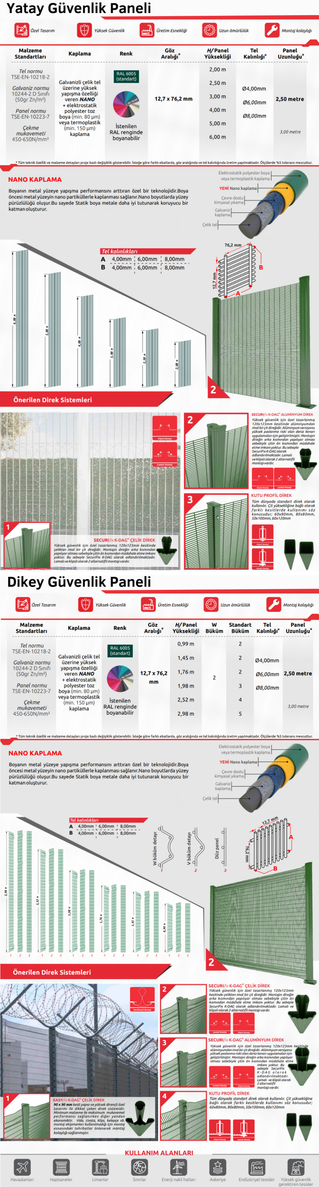 - Özelleştirilebilir Yapılandırmalar: Çeşitli yüksekliklerde, panel boyutlarında ve kaplamalarda mevcut olan Güvenlik Paneli sistemi, çeşitli ortamlar için esnek bir çözüm sağ ayarak belirli güvenlik gereksinimlerine uyacak şekilde özelleştirilebilir.