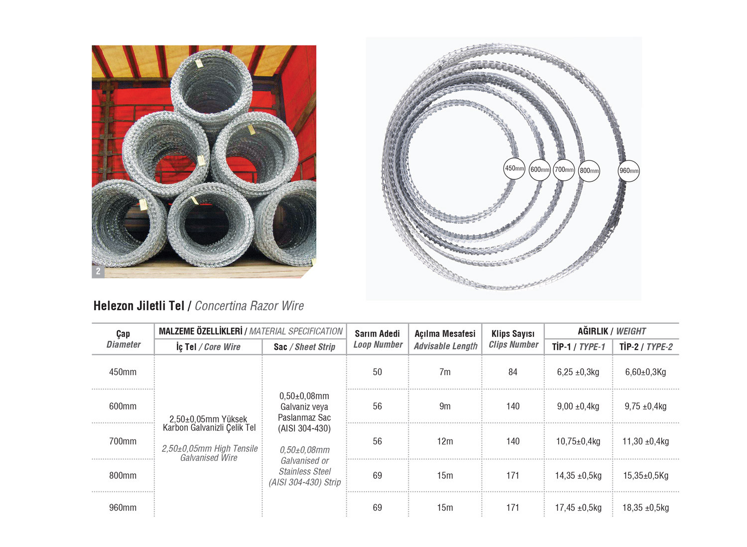 Helisel silindirik şekil verilmiş, iç hat çelik teli üzerine şerit sac sarılarak imal edilen tel grubudur. Yüksek güvenliğin önemli olduğu yerlerde kullanımı önceliklidir.