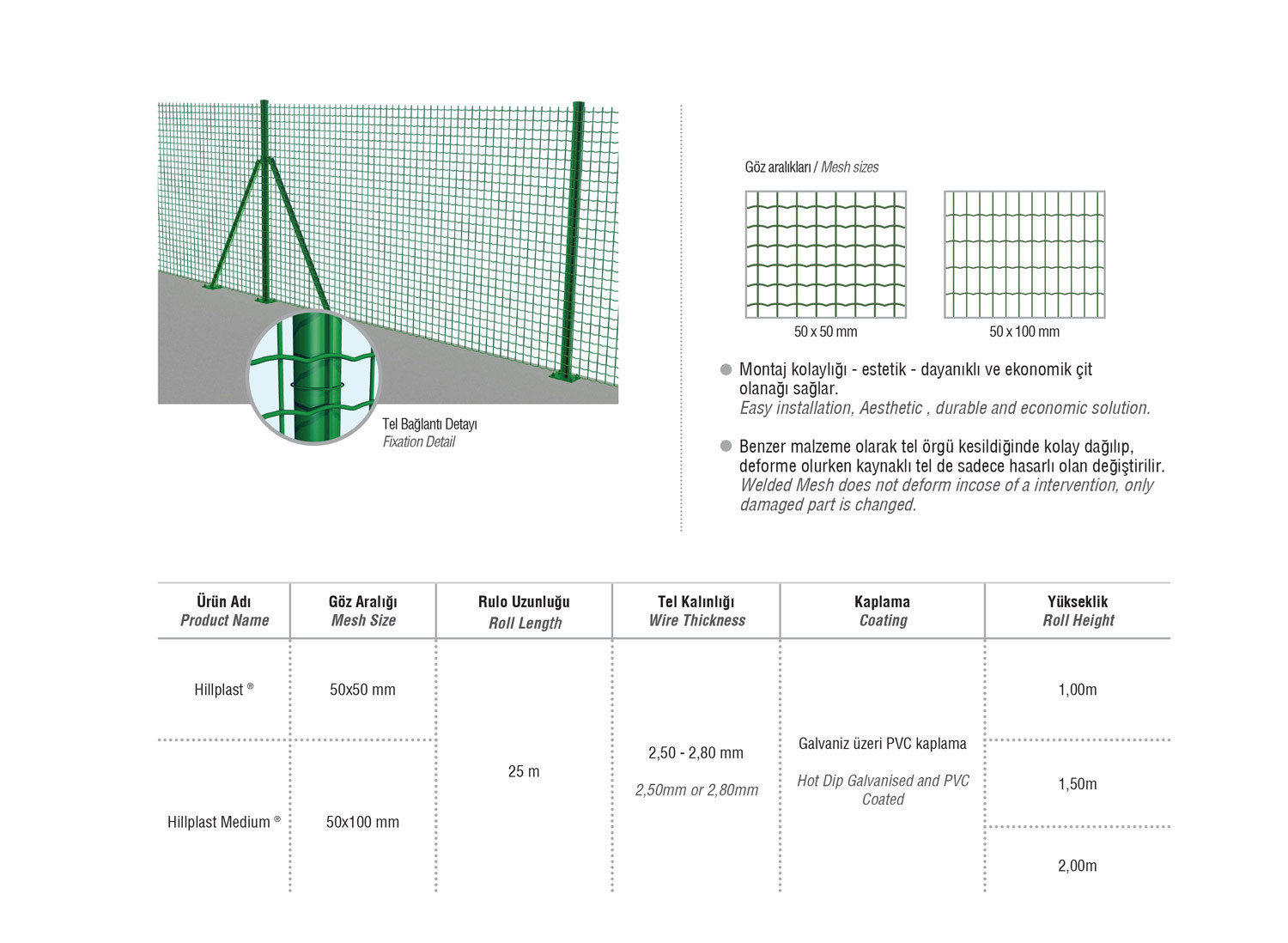 Kaynaklı teller estetik görünüşü ve yüksek dayanımı bir arada sunan Örgü teline alternatif özel ve ekonomik bir çit sistemidir. Galvanizli veya Pvc tellerden üretimi yapılan Kaynaklı Teller kare veya dikdörtgen gözlerden oluşmaktadır. Benzer malzeme olarak tel örgü kesildiğinde kolay dağılıp, deforme olurken kaynaklı tel de sadece hasarlı olan değiştirilir.