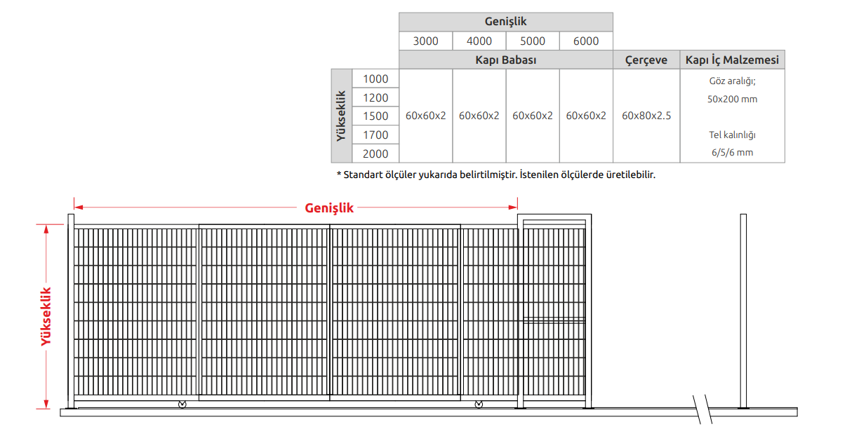 İstenilen yükseklik ve uzunlukta, motorlu-motorsuz seçenekleri ile uygulaması yapılabilmektedir. Açılma mesafesinin yeterli olmadığı yerlerde, teleskopik ve akordiyon modelleri ile tüketicilere çözümler sunulmaktadır.