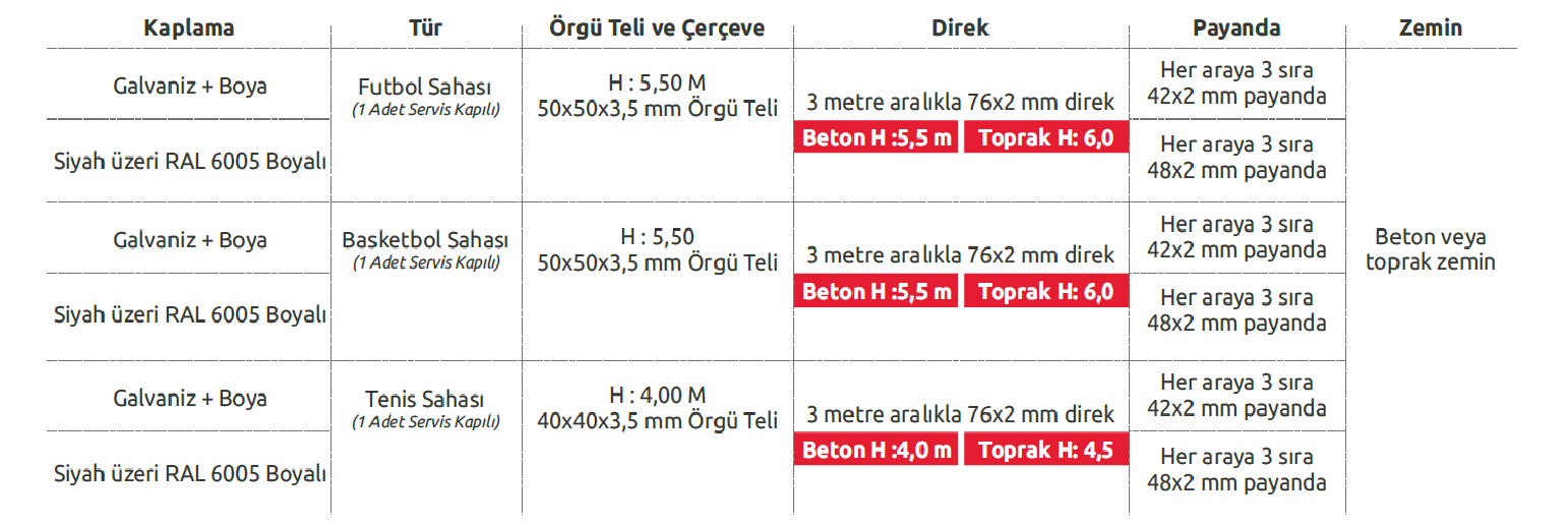 Belediye park ve bahçelerinde, site alanlarında veya ticari amaçla talep edilen PVC kaplı örgü tellerle uygulanan sahalarımız, istenilen yükseklikte yapılmaktadır.