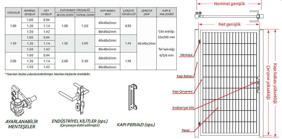 Yaya giriş ve çıkışı için tasarlanmış tek kanatlı kapılardır. İstenilen yükseklik ve uzunlukta uygulaması yapılabilmektedir.